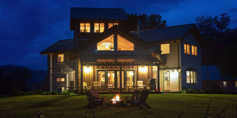 Located in a secluded valley just south of Ithaca, New York, Tenwood Lodge was built as a dream vacation home to accommodate extended multi-generational family gatherings.