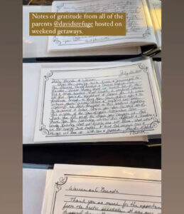One of my favorite memories was sitting with a mom and dad in what used to be David’s bedroom but was now the sitting room for our David’s Refuge guests. Their daughter did not have a clear diagnosis. They felt very alone. Unlike many other parents who could call up another family whose child had a similar diagnosis, they had no one. Brenda and I listened to them, cried with them, and reminded them that they were not alone and were loved by God. Knowing that they were people of faith I told them, “You realize your daughter is a divine assignment, given to you by God! He chose you to love her and raise her.” The moment I said this I almost saw a physical change in my friend’s being. It was like a weight had been lifted off their shoulders. And now almost every time I see them, my friend embraces me and whispers in my ear with tears in his eyes, “My daughter is a divine assignment from God.”